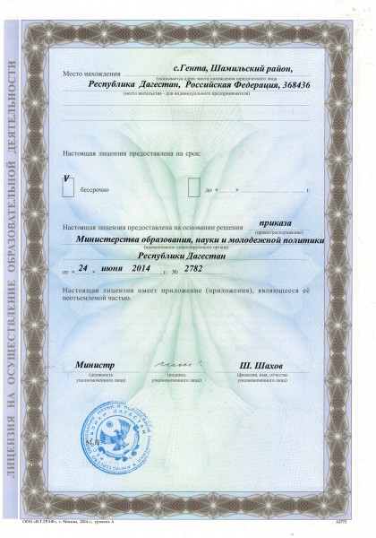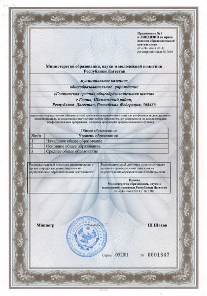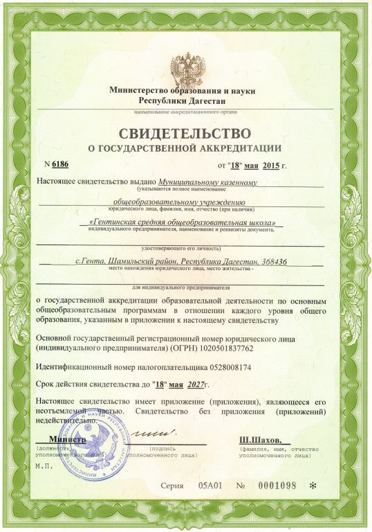 | Адрес местонахождения образовательной организации* | 368436, Республика Дагестан, Шамильский район , село Гента |